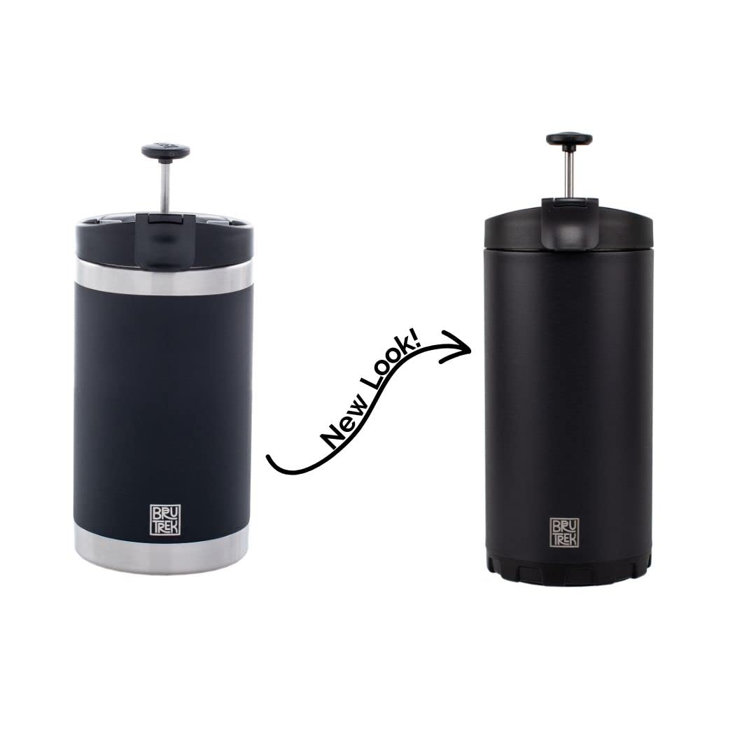 BruTrek® by Planetary Design Steel Toe 3.0 Travel Coffee Press - Brew 20 fl.oz On The Go - No Spill Lid, Double Wall Vacuum Insulated Stays Hot for Hours, French Press Coffee (Obsidian Black)